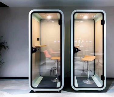 Nos Pods / Kiosques / Booths sont des modules professionnels ultra-modernes conçus pour créer rapidement un espace fonctionnel, esthétique et totalement autonome. Grâce à leur design futuriste et leurs finitions haut de gamme, ils s’intègrent parfaitement dans les environnements urbains, commerciaux ou événementiels.